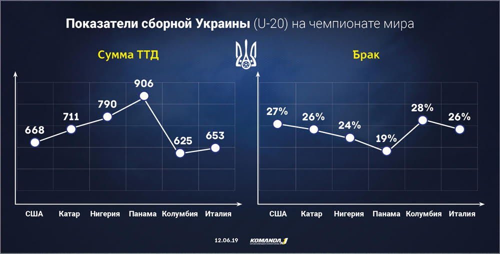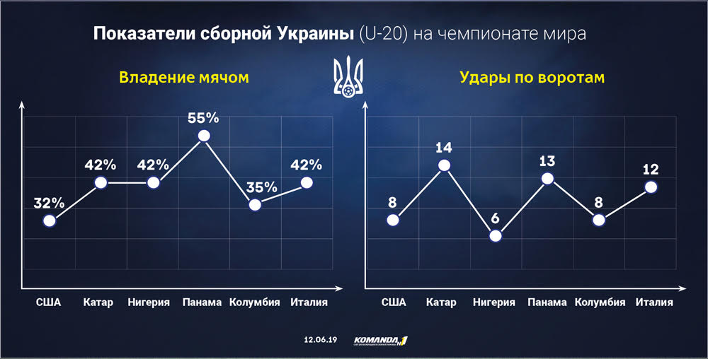 В среднем за игру по воротам сборной Украины (U-20) наносят меньше 10 ударов, при этом в створ ворот в шести матчах пробили всего 12 раз. Из пределов штрафной площади по владениям украинцев производят по 4,3 выстрела.