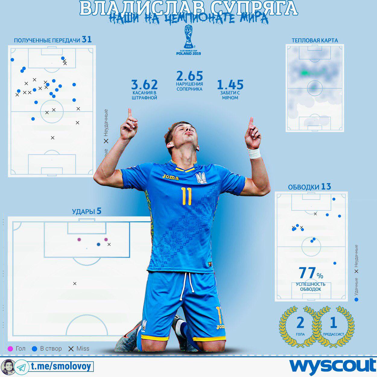 Блогер Михаил Смоловой в своем Telegram-канале разбирает игру нападающего "Динамо" Владислава Супряги за сборную Украины U-20 на ЧМ-2019.