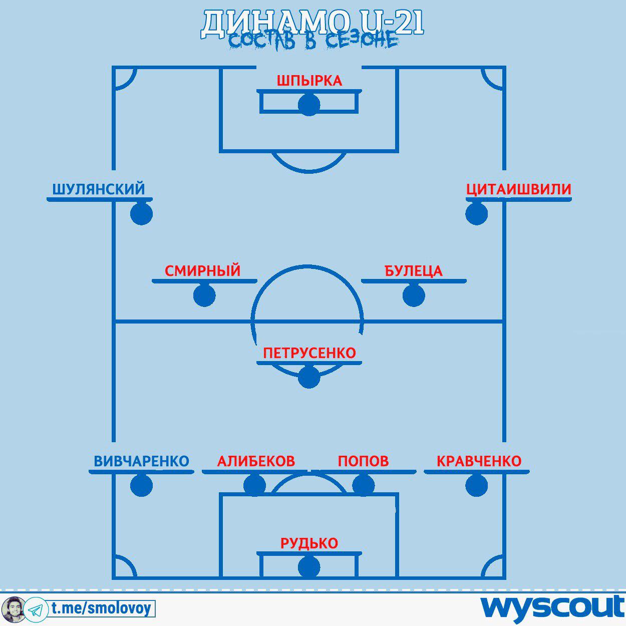 На схеме - усреднённой по игровому времени состав U-21 (без учета покинувших клуб зимой).