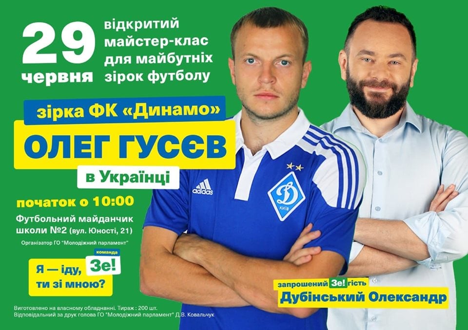 Экс-полузащитник «Динамо» и сборной Украины Олег Гусев проведет футбольный мастер класс в Украинке в рамках акции «Зе! команды».