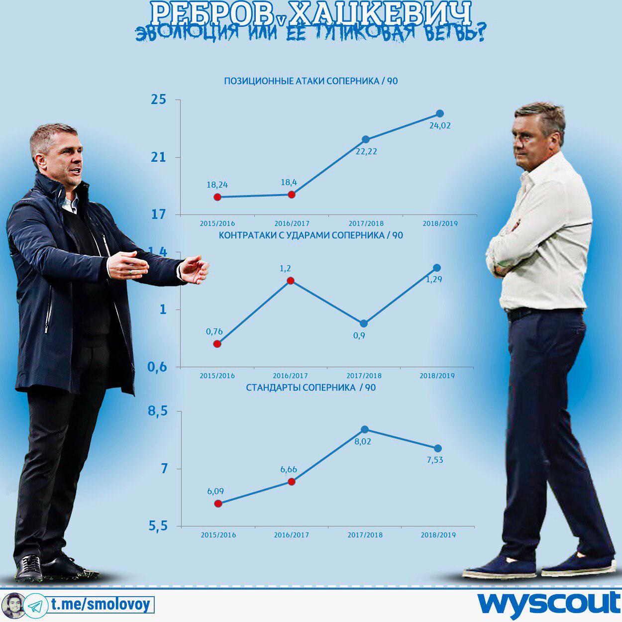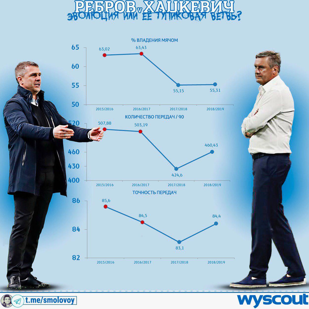 Ещё пару месяцев назад некогда забавные ребята уже делали что-то похожее. Мне тогда абсолютно не зашли их выводы. Было изначально заметно, что стояло редакционное задание подвести цифры под тезис, который активно ходил и ходит в СМИ: «у Реброва были более сильные футболисты, потому он оказался успешнее Хацкевича».