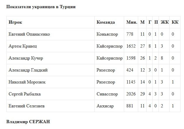 С сентября 2017 года выступает в Турции еще один бывший игрок сборной Украины. Рыбалка в завершившемся сезоне провел больше минут, чем все остальные наши легионеры. Сергей поучаствовал практически во всех матчах команды, забил четыре гола и отдал три ассиста. В том числе на счету украинца дубль Галатасараю (4:3) в последнем туре. Ризеспор финишировал в чемпионате 12-м, а в Кубке вылетел после первого же поединка.