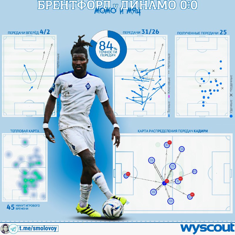 Блогер Михаил Смоловой в своем Telegram-канале проанализировал игру Момо Кадири в последнем матче "Динамо".