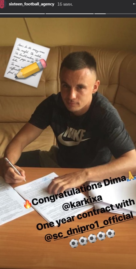 Бывший полузащитник «Динамо» Дмитрий Коркишко подписал контракт с новичком Премьер-лиги СК «Днепр-1». Соглашение рассчитано на один год, гласит сообщение на странице агента Ивана Пироженко в Инстаграме.
