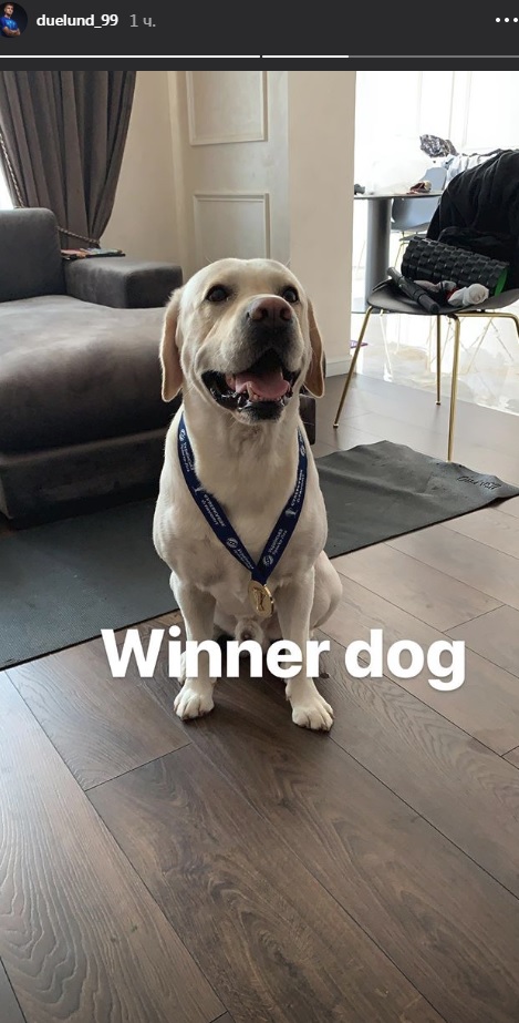 Легионер "Динамо" Миккель Дуэлунн примерял медаль за победу в Суперкубке Украины на своего домашнего любимца.