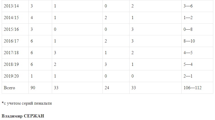 В финальных поединках у Динамо и Шахтера по восемь «чистых» побед. В остальных матчах случилось шесть серий пенальти, в четырех из которых верх взяли киевляне. После успеха в Суперкубках столичные сравнялись с горняками по количеству выигранных трофеев — у обеих команд по 34.