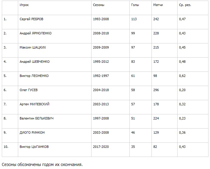 Топ-10 бомбардиров «Динамо» в чемпионатах Украины