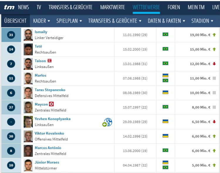Звездный переход Евгения Коноплянки из Шальке в Шахтер спровоцировал некоторые перестановки в списке самых дорогих футболистов Горняков по версии transfermarkt.de, пишет zbirna.com.