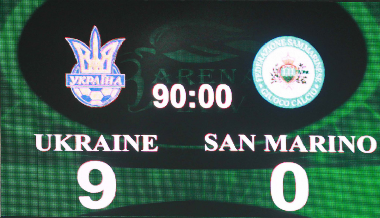 2013 год — Львов-Арена стала свидетельницей самой крупной победы в истории сборной Украины. Соавтором рекорда стала национальная команда Сан-Марино. Забивали Девич, Селезнев, Эдмар, Хачериди (дважды), Коноплянка, Безус, Федецкий и Ракицкий.Победный старт в Лиге наций