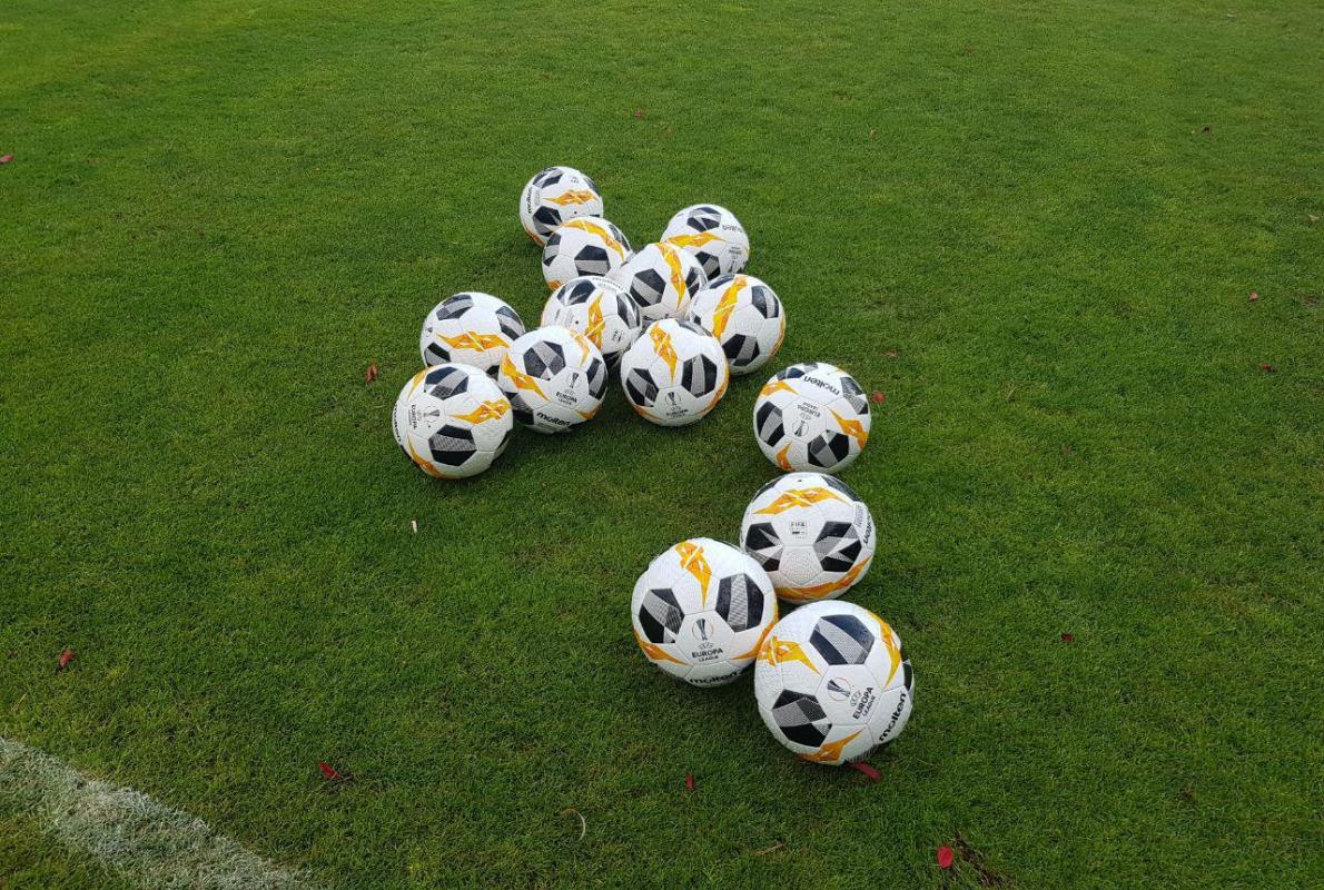 Динамовцы выполняют упражнение на тренировке перед завтрашним матчем с "Мальме".