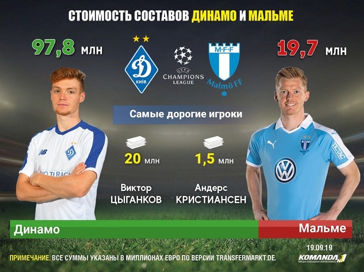 По версии transermarkt.de, самый дорогой футболист сегодняшнего соперника киевского Динамо, шведского Мальме, стоит 1,5 млн евро.