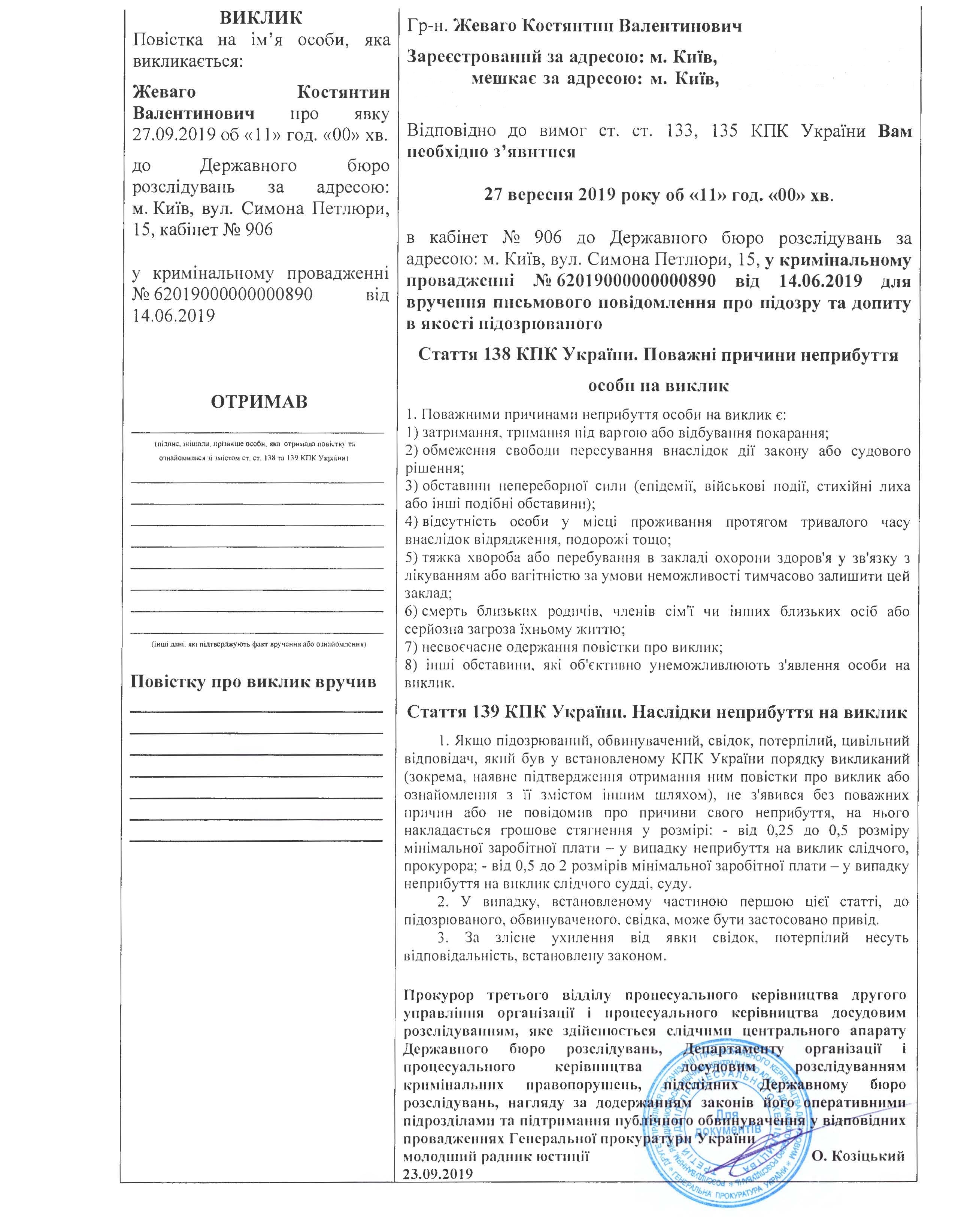 Соответствующая повестка опубликована на официальном сайте генеральной прокуратуры Украины.