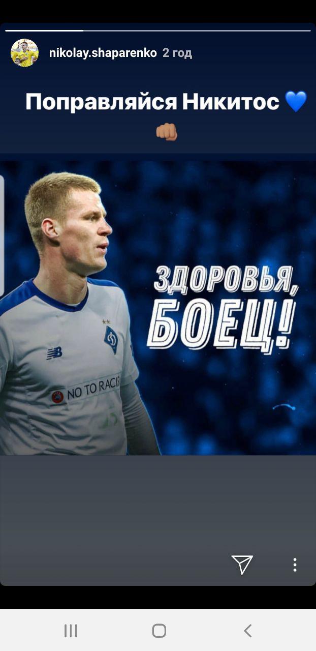 Полузащитник "Динамо" Николай Шапаренко в своем Instagram поддержал своего одноклубника Никиту Бурду, у которого есть подозрение на серьезную травму.