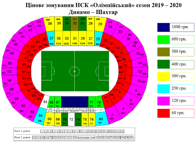 На цей поєдинок доступні квитки наступних цінових категорій: 60, 120, 250, 300, 400, 500, 800 та 1000 гривень.