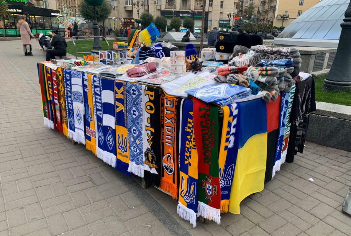 В центре Киева на уличных прилавках начали продавать шарфы и флаги Португалии, пишет телеграм-канал "Украинские заметки".