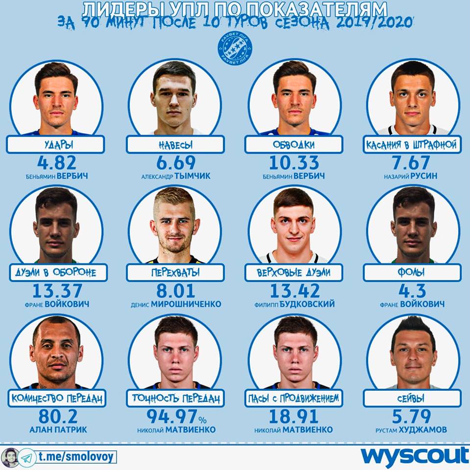 - Лидеры УПЛ после 10 туров по средним показателям за 90 минут