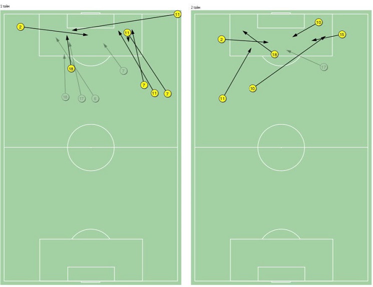 Схема острых передач футболистов сборной Украины в матче с Литвой