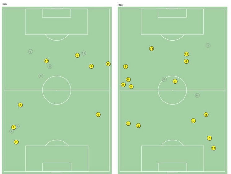 Компактность игровых построений — залог успеха нынешней сборной Украины. В матче с Литвой расположение игроков было практически идеальным, при этом нужно отмечать не только острые передачи, которые перестали носить характер длинных забросов, но и игру украинцев в обороне. Причем игру на чужой половине поля. Прижали соперника к воротам, потеряли мяч — тут же его вернули. В активной зоне у футболистов сборной Украины было 12 удачных отборов, 10 перехватов и 22 подбора!