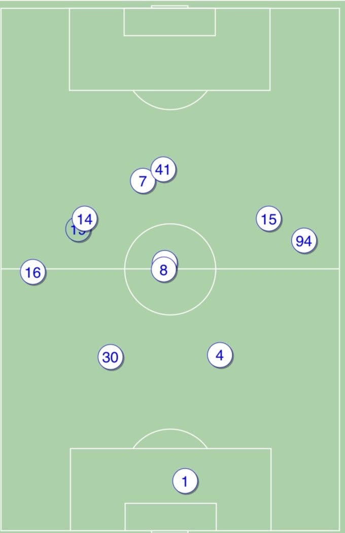 Усредненные позиции игроков Динамо в матче с Копенгагеном