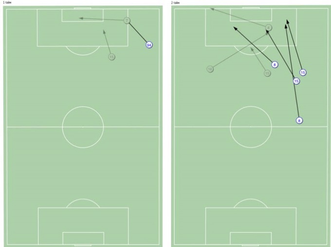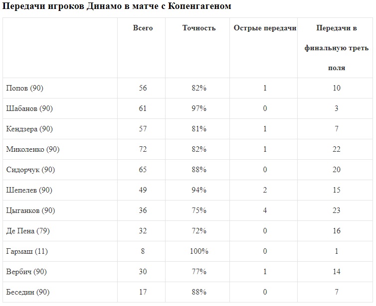Схема острых передач в исполнении игроков Динамо в матче с Копенгагеном