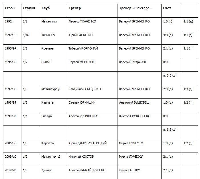Клубы, выбивавшие «Шахтер» из Кубка Украины
