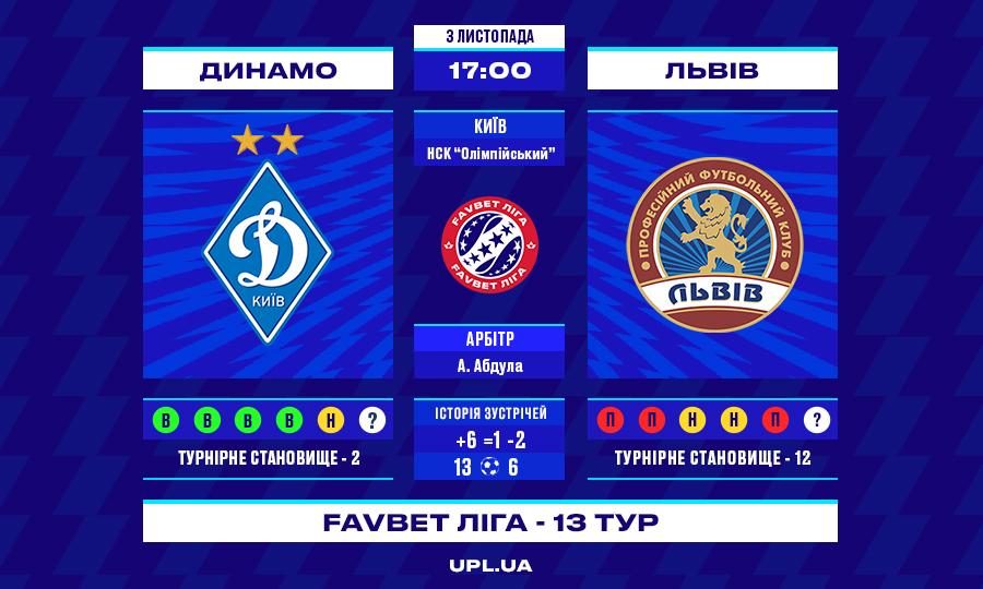 Матч 13 туру «Динамо» — «Львів». Статистичне прев’ю.