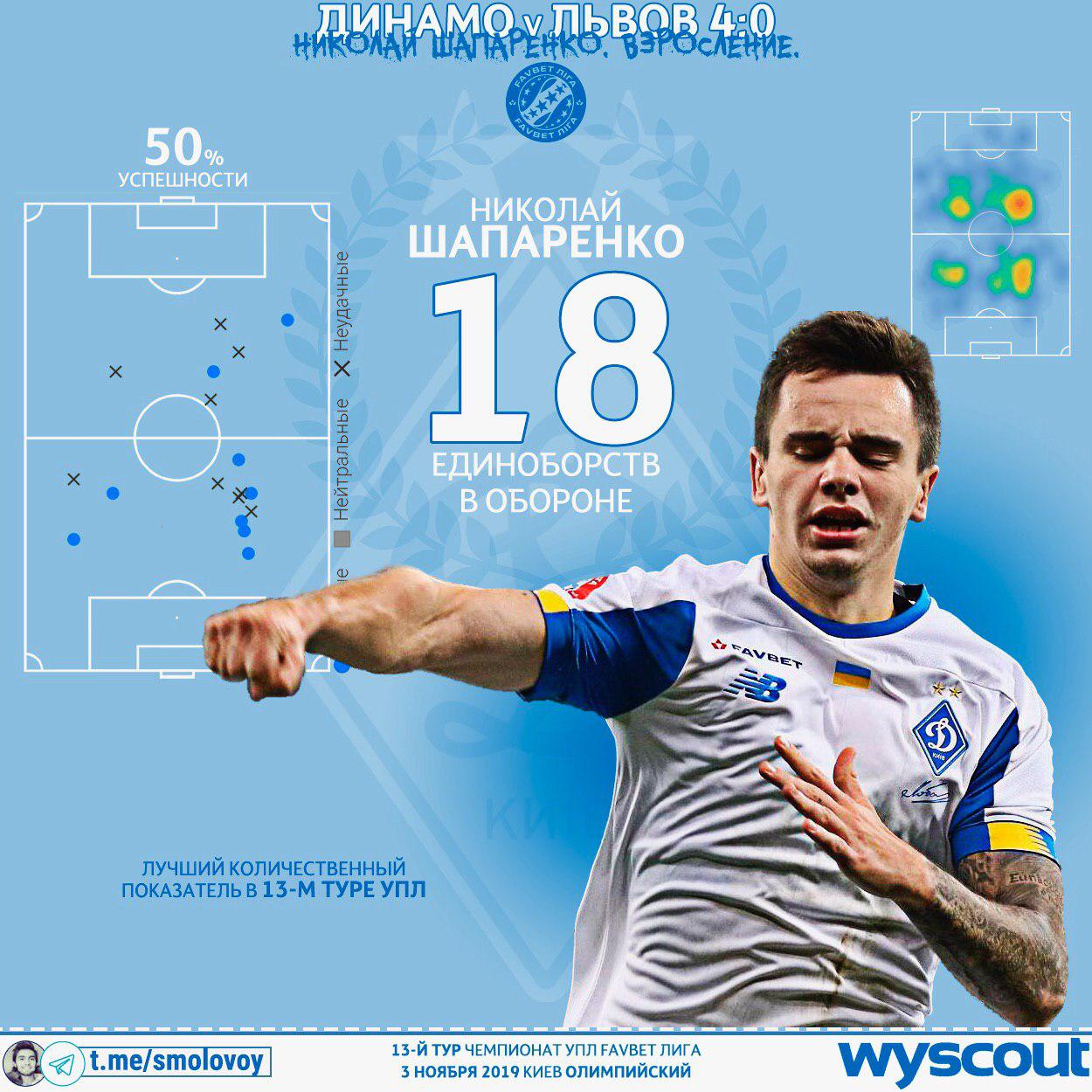 Блогер Михаил Смоловой в своем Telegram-канале разбирает игру полузащитника "Динамо" Николая Шапаренко в матче против "Львова".