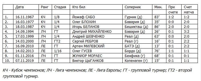 В матче с «Копенгагеном» «Динамо» 10-й раз за время выступления в еврокубках не сумело реализовать пенальти. В четырех случаях сия неудача обходилась для киевлян без последствий, а в шести, как и ныне, повлияла на исход встречи. Автором, так сказать, «юбилея» стал Виктор Цыганков, который второй раз в карьере не смог переиграть вратаря соперников в дуэли один на один. Месяц назад в поединке с «Колосом» удар Виктора с «точки» парировал Евгений Волынец. В целом же Цыганков во всех турнирах реализовал 13 одиннадцатиметровых из 15.