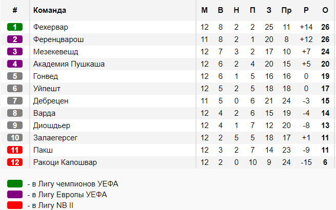 После этого матча Ференцварош расположился на втором месте в чемпионате.