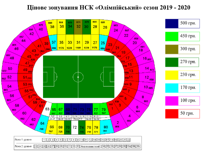На гру доступні квитки наступних цінових категорій: 50, 100, 170, 230, 270, 300, 450 та 500 гривень.