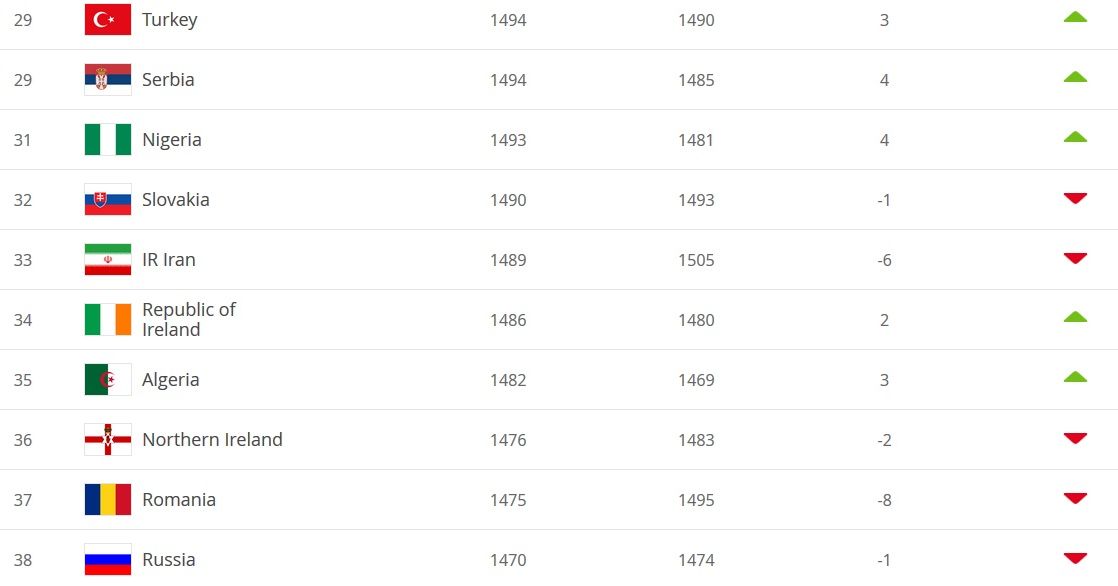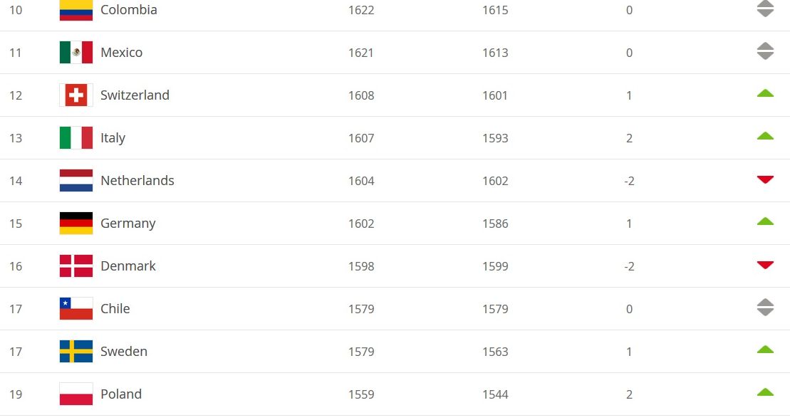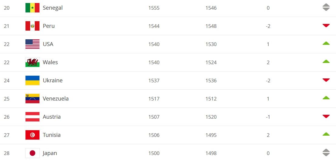 В обновленном рейтинге ФИФА сборная Украины по сравнению с октябрем опустилась на две позиции. Сейчас наша национальная команда занимает 24-е место в мире.