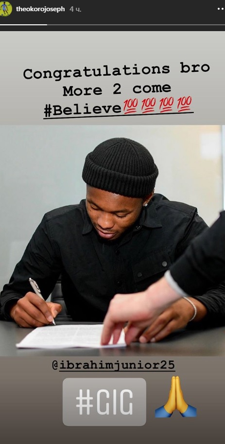 - Поздравляю, брат. Дальше - больше. Верю на 100%, - написал Окоро в Инстаграме.