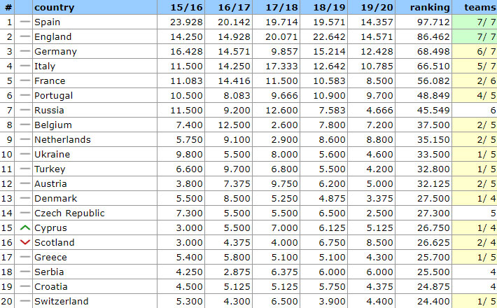 У четвер, 12 грудня, пізно ввечері завершилися останні матчі групового етапу Ліги Європи сезону-2019/20. А це означає, що варто поглянути у таблицю коефіцієнтів УЄФА та зробити певні висновки щодо майбутніх позицій України у ній.