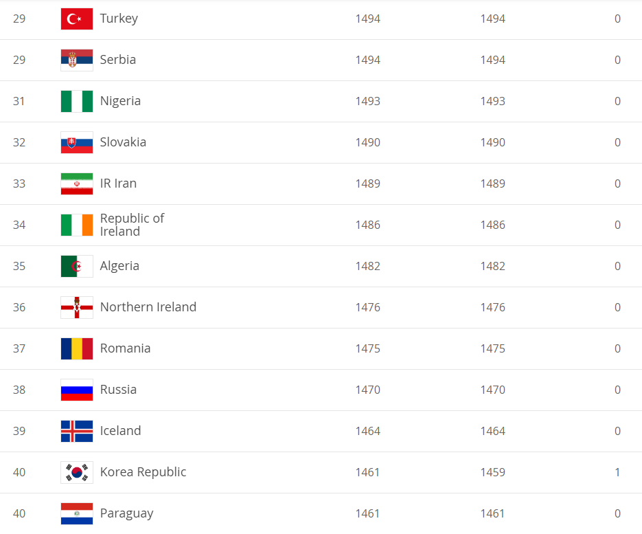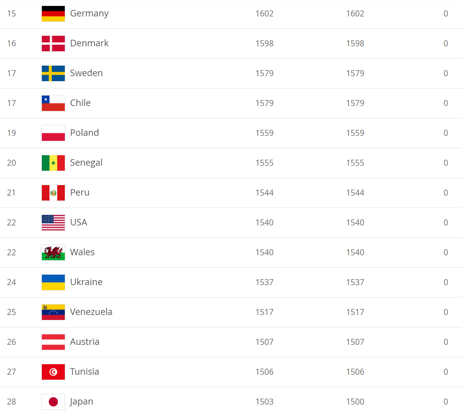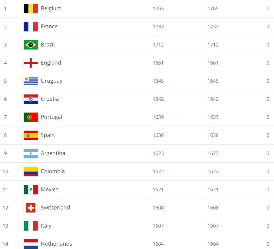 ФИФА сегодня опубликовала рейтинг футбольных сборных мира.