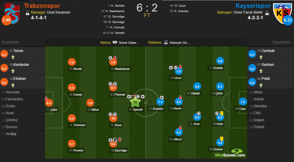 Одним из лучших в составе "Трабзонспора" в игре был Хосе Соса (экс-игрок харьковского "Металлиста"). Он получил от Whoscored оценку "10".