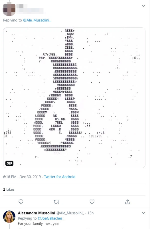Особо громкий скандал случился в понедельник. Один из болельщиков обратился к Алессандре в твиттере, опубликовав изображение петли. Женщина ответила ему, написав, что это ждет его семью в следующем году.