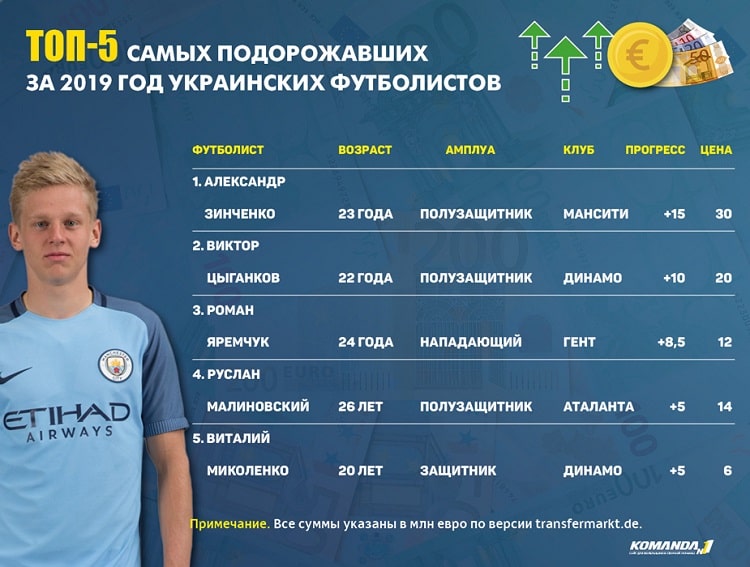 Зинченко, Миколенко и еще три самых подорожавших украинских футболиста в 2019-м году