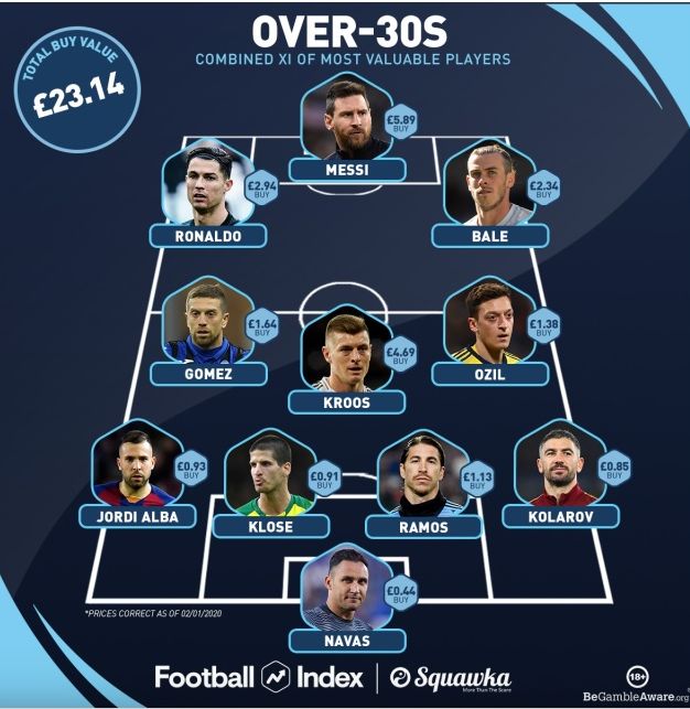 Символическая сборная ветеранов, составленная на значении каждого игрока в Football Index, выглядит следующим образом.