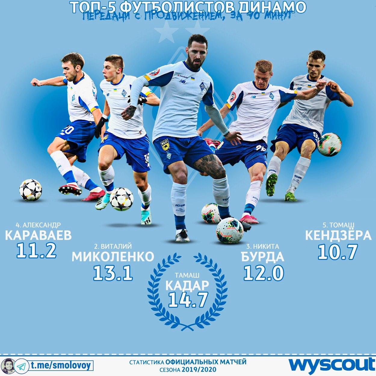 ТОП-5 футболистов "Динамо" по передачам с продвижением за 90 минут