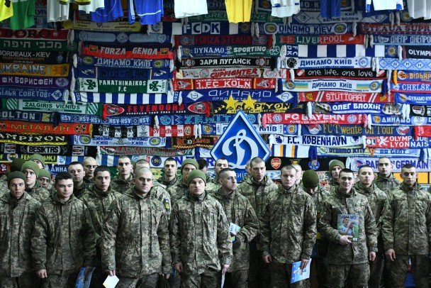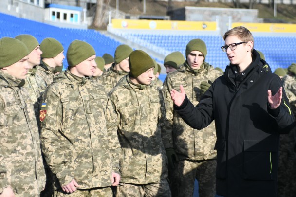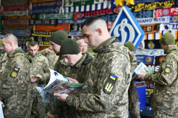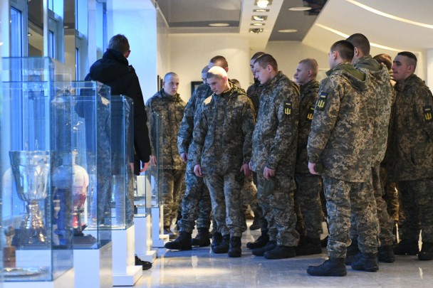 Визит на стадион завершился в помещении Фан-клуба ФК «Динамо» Киев, который военнослужащие особенно хотели посетить, ведь одной из его изюминок является уникальная стена с огромной коллекцией фанатских шарфов и игровых футболок клубов со всего мира, которые когда-то встречались с «Динамо».