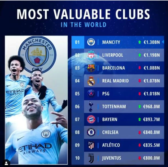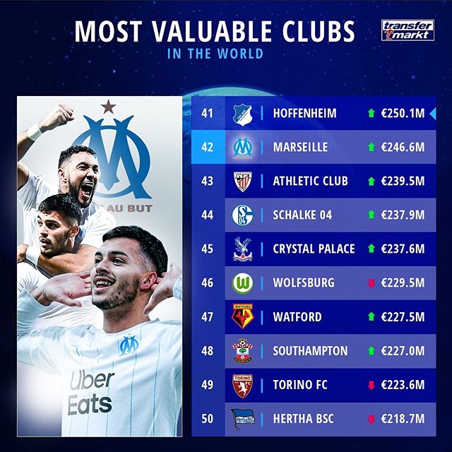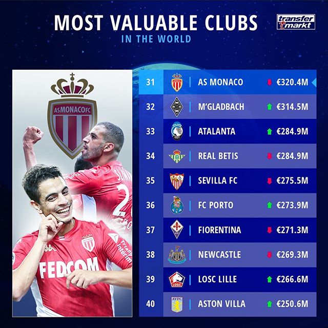 На вершине расположился Манчестер Сити Александра Зинченко. 29 место досталось Вест Хэму Андрея Ярмоленко, а 33-е — Аталанте Руслана Малиновского.