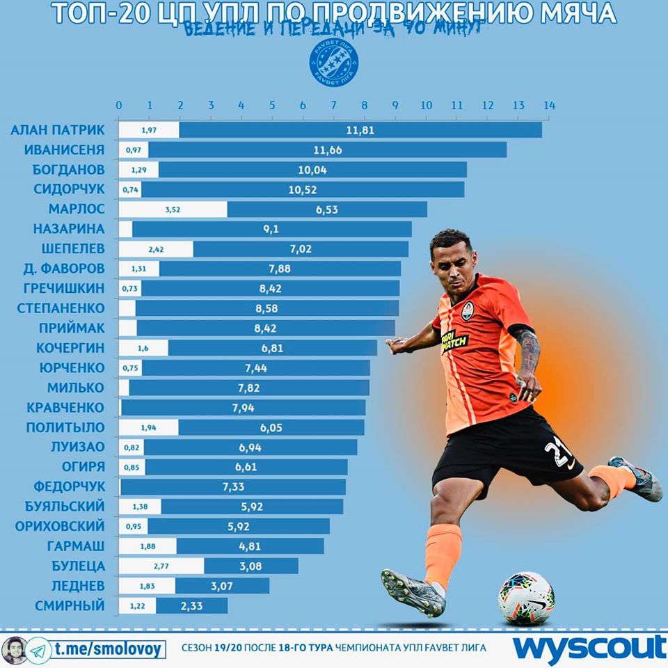 - Топ-20 ЦП/АП УПЛ по продвижению мяча (плюс бонус в виде динамовцев в аренде/бывших)