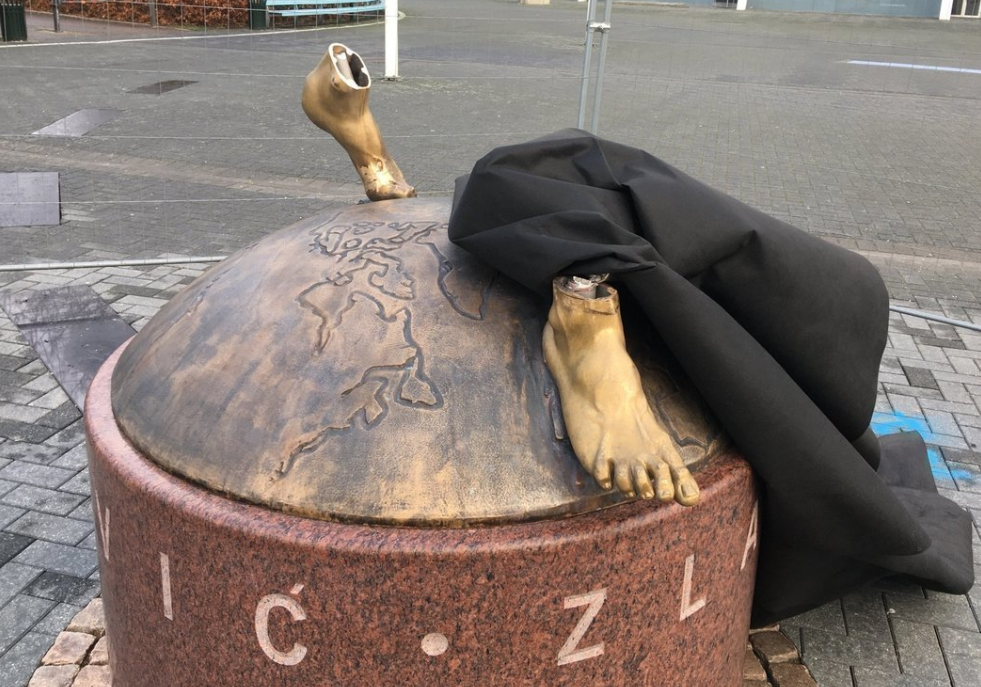Статуя форварда «Милана» Златана Ибрагимовича была убрана с постамента в Мальме. От статуи остались только две ступни футболиста.