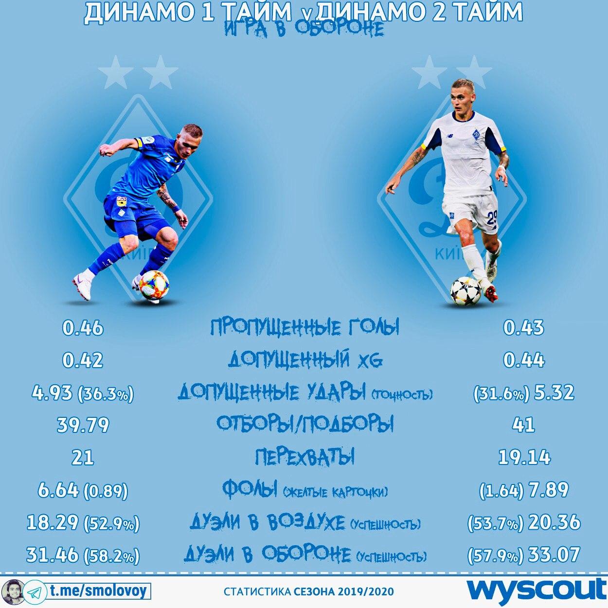 Во втором тайме Динамо пропускает всего на 0.03 гола меньше, правда xG этих ударов на 0.02 выше.