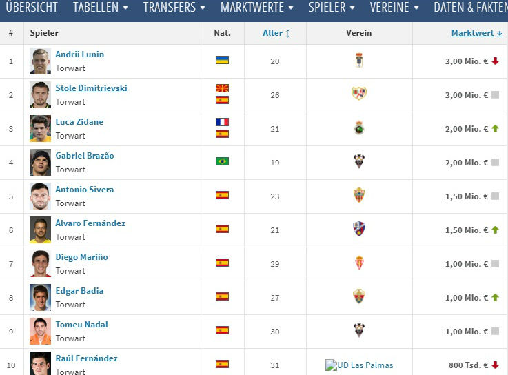 Лунин прямо сейчас является еще и самым дорогим голкипером лиги. Правда, сей титул Андрей делит с северомакедонским старжем ворот Райо Вальекано Столе Димитревским.