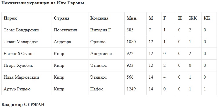 Zbirna.com продолжает разыскивать украинских легионеров по разным уголкам Старого Света. На сей раз мы обратили свое внимание на Юг, где наши футболисты выступают в высших дивизионах Португалии, Андорры и Кипра.