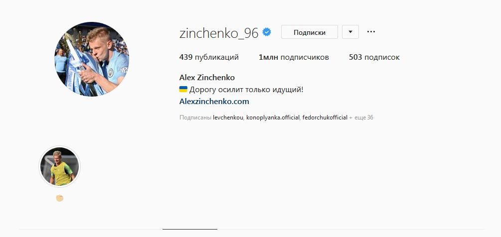 У игрока "Манчестер Сити" и сборной Украины Александра Зинченко уже 1 миллион подписчиков в Instagram.
