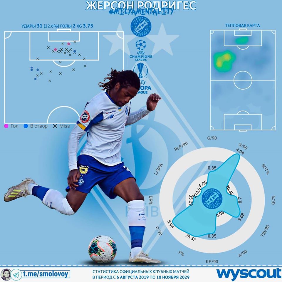 Родригес оказался не готов к позиционному нападению? Не смог подтвердить свою стату из чемпионата Republica Moldova против Олимпика, Карпат и Мариуполя? Вышел же против Карпат на близкой по духу позиции левого вингера и за 45 минут выиграл 1 единоборство в атаке из 11! Норм, чё...тренер, поди, виноват.