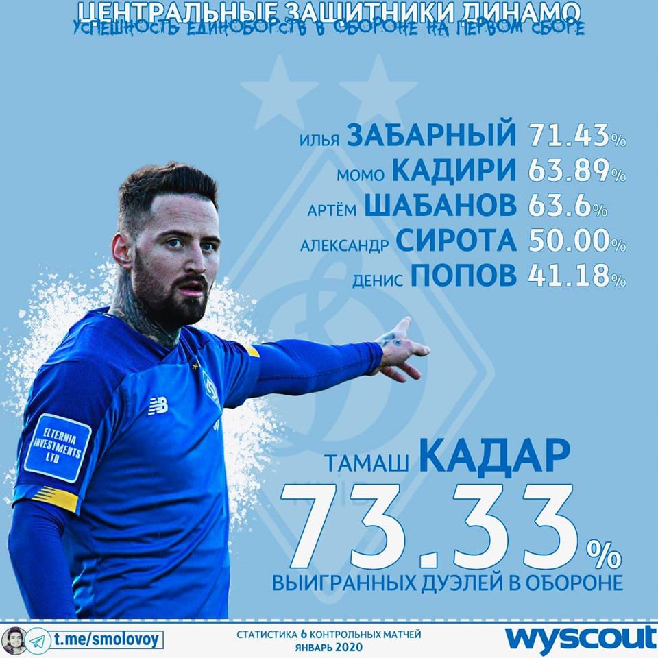 Цыганык, а с ними и миллионы болельщиков Динамо, наверное, рассчитывал видеть на дне Кадара, а тут оказался Денис Попов. Скорее всего его форма ещё далеко не оптимальна, иначе пояснить 41.18% успешности в 8.5/90 дуэлях в обороне нельзя. В 10 осенних поединках имел намного более высокий показатель в 56.4%.
