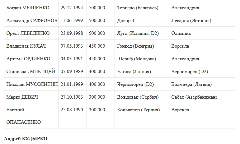 В закрывшееся зимнее трансферное окно переходы украинских футболистов не впечатляли размахом. В открытых источниках фигурирует очень скромная цифра — 1 170 000 евро. Из 470 тысяч получила Десна за Артема Фаворова, а 700 тысяч уплатил Днепр-1 за двух футболистов — Александр Сваток и Владимир Адамюк. Сваток вернулся в Украину из Хорватии, Адамюк совершил внутренний трансфер — из Львова.